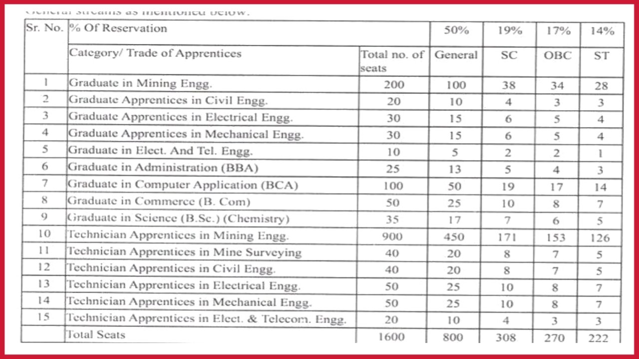 03. नवसिखुआ प्रशिक्षु (कार्यालय सहायक, सामान्य ड्यूटी सहायक, सहायक खान सर्वेक्षक, सुरक्षा गार्ड) 100
