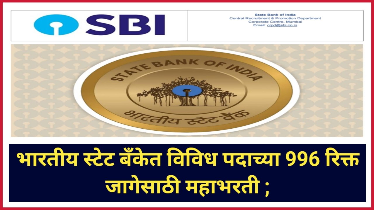 एसबीआई एससीओ: महाभारती, भारतीय स्टेट बैंक में विभिन्न पदों की 996 रिक्तियों के लिए प्रक्रिया क्रियान्वित की जा रही है, उक्त पदों के लिए आवश्यक योग्यता रखने वाले उम्मीदवारों से निर्धारित अवधि के भीतर ऑनलाइन आवेदन आमंत्रित किए जाते हैं। (विभिन्न पदों के लिए एसबीआई भर्ती, पद रिक्तियों की संख्या – 996) आइए रिक्तियों का विस्तृत विवरण इस प्रकार देखें।