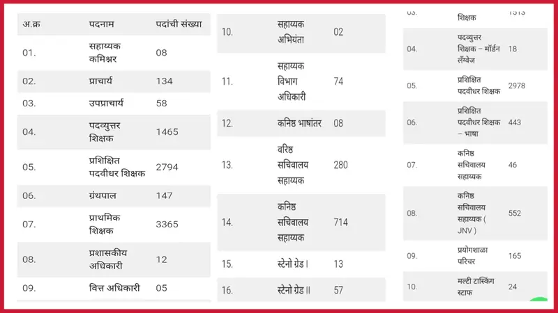 आवश्यक योग्यताएँ: पदवार विस्तृत योग्यता देखने के लिए नीचे नमूना विज्ञापन देखें।