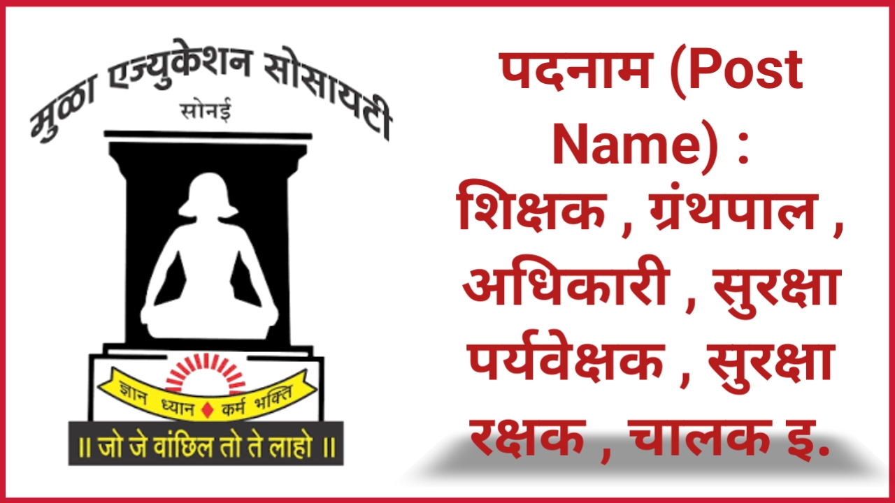 मुला एजुकेशन सोसाइटी अहिल्यानगर के अंतर्गत शिक्षक, पुस्तकालयाध्यक्ष, अधिकारी, सुरक्षा पर्यवेक्षक, सुरक्षा गार्ड, ड्राइवर आदि। पदों पर सीधी भर्ती प्रक्रिया क्रियान्वित की जा रही है। (विभिन्न पदों के लिए मुला एजुकेशन सोसाइटी भर्ती) आइए रिक्तियों का विस्तृत विवरण इस प्रकार देखें।
