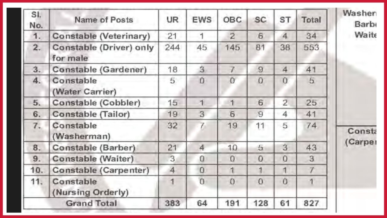 SSB: सशस्त्र बलों के अंतर्गत कांस्टेबल (ड्राइवर, माली, मोची, धोबी, नाई, बढ़ई, नर्सिंग आदि) पदों की 827 रिक्तियों के लिए भर्ती प्रक्रिया क्रियान्वित की जा रही है। (सशस्त्र सीमा बल कांस्टेबल पद के लिए भर्ती, पद रिक्तियों की संख्या-827) आइए रिक्तियों का विस्तृत विवरण इस प्रकार देखें।